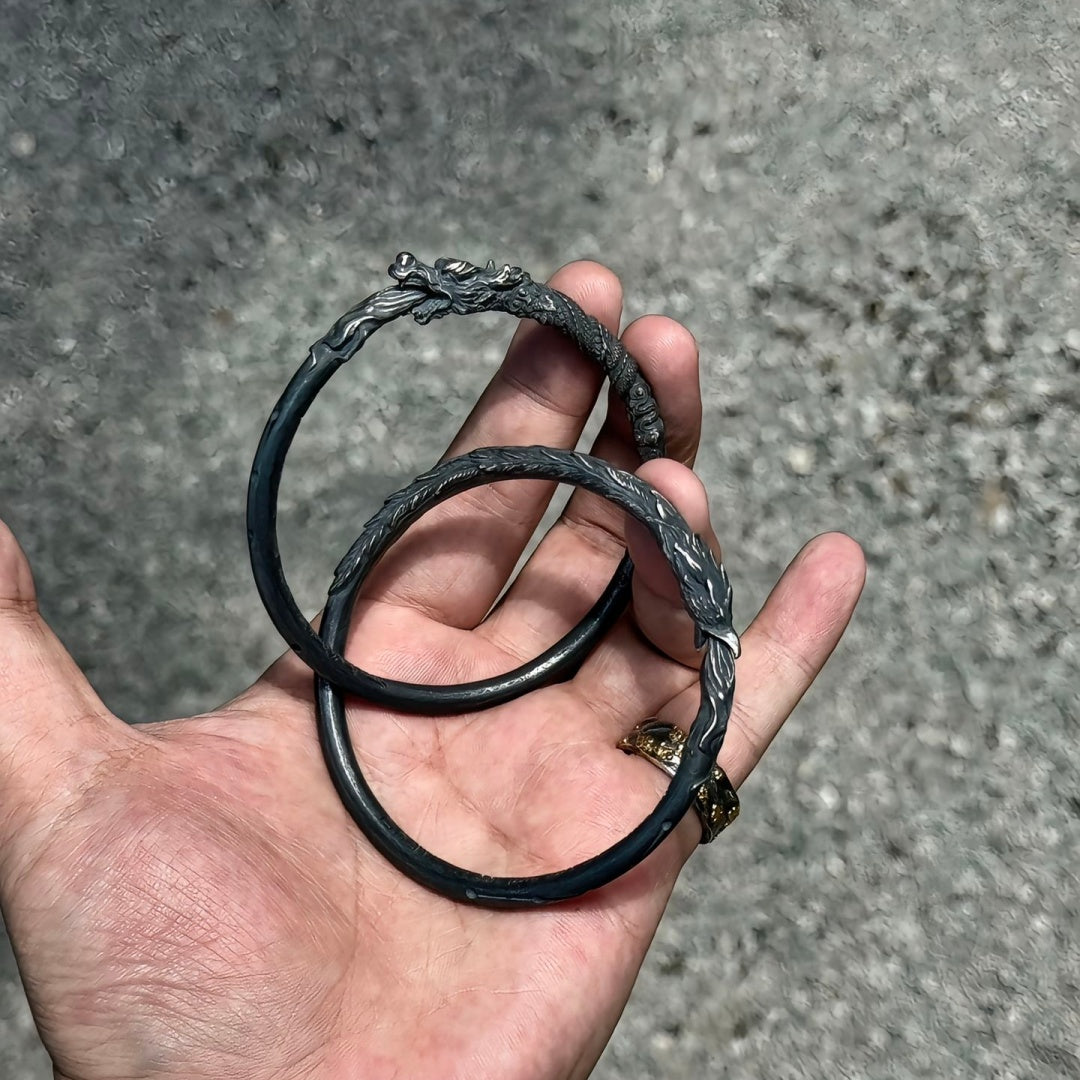 This Dragon-Phonix Sacred Union Bracelet embodies the eternal harmony of heaven's most powerful protectors through its exquisite dual-ring design. Featuring intricately crafted dragon and phoenix rings that gracefully intertwine, this piece represents the perfect balance of celestial power and ancient blessing magic. More than jewelry—this is a wearable symbol of sacred union and divine protection.
