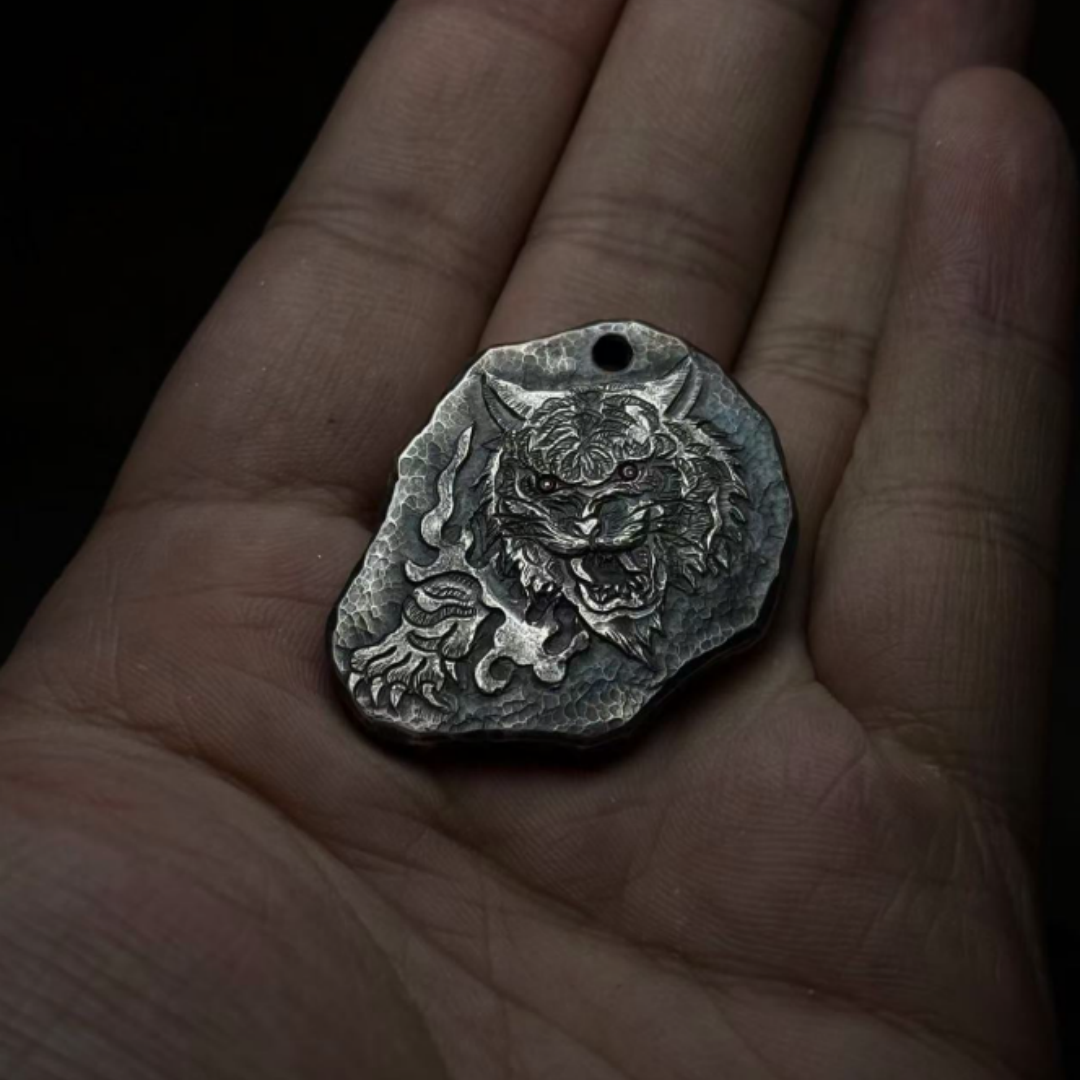 This Mountain Lord Silver Medal captures the raw, untamed power of the wilderness guardian in solid sterling silver. Struck in an organic, irregular circle that echoes ancient hand-forged talismans, this piece features a powerful high-relief depiction of the tiger — the revered "Lord of the Mountain." More than jewelry, this is a portable altar to the fierce spirit that has guarded sacred spaces since ancient times.